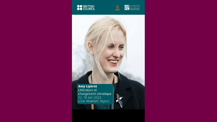Amy Liptrot animera jeudi 16 juin 2022 à 16h une masterclass, à destination des étudiants, écrivains, journalistes, tous les auteurs en herbe et intéressés par la question de la protection de l’environnement. Inscription à : Kitabaarc@gmail.com. Copie cc à : dz-arts-culture@britishcouncil.org. Dernier délai pour s’inscrire: Mercredi 15 juin 2022 .