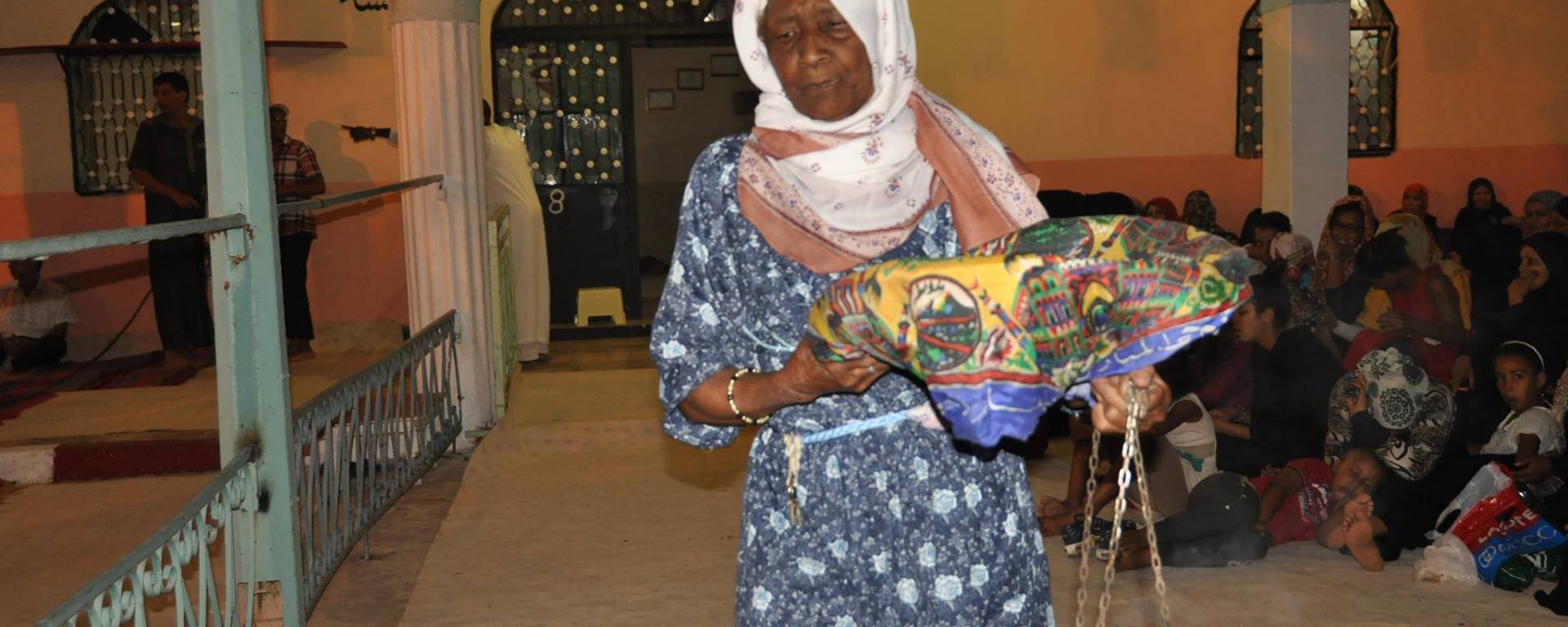 La lila commence à 18 heures. Chaque soir, deux groupes (de 18h à 00h et de 00h à 5h) se produisent dans la grande cour de la zaouïa. L’espace est aménagé de sorte à ce que la troupe puisse être au centre de l’espace sacré –sacré car purifié par les membres de l’orchestre par différentes danses introductives, notamment le signe populaire de «Taslim» vers les quatre points cardinaux–, à l’entrée duquel, on retrouvera le Chaouech assis à côté de la «Bekhara». Derrière, les doyens sont adossés au mur, ils sont les seuls à avoir ce privilège, perçu comme une marque de respect. Les hommes et les femmes se font face. Bien qu’il n’y ait pas de contact entre les deux, ils se mélangent tout de même dans «l’espace sacré» puisque les transes sont mixtes, car même si on nous a expliqué qu’il existe dans le répertoire, les bradjs appelé «Nsawiyine», exclusivement réservés aux femmes, on nous a également signifié qu’«ils ne font pas partie du répertoire de toutes les confréries» (chaque «confrérie» a une ou deux séries de bradjs qu’elle maîtrise le mieux et qui fait son originalité), et le temps est parfois insuffisant pour jouer toutes les séries de bradjs du riche et dense répertoire diwane (Lebhara, Sraga, Hassaniyine, Bambrawiyine, Haoussawiyine, Lekhlawiyine et Nsawiyine). Les femmes entrent –ou «tombent» puisque les Ouled Diwane disent «ytih». Ils qualifient également la transe de «laâb», jeu– en transe donc aux côtés des hommes, au même titre que les hommes, même si elles doivent se couvrir la tête et le visage pour rentrer dans «l’espace sacré». Leurs transes sont vives, souvent plus spectaculaires que celles des hommes, et parfois violentes. Au même titre que les hommes, elles utilisent les cravaches dans «Manandabo» (la cravache nommée «Boulala» dans le Diwane est l’accessoire canonique de ce bordj, mais on peut la retrouver dans d’autres morceaux tout au long de la lila), ou les couteaux dans par exemple «Jangari Mama» et dans d’autres bradjs aussi. Certains danseurs-«transeurs» jouent, s’affrontent et leurs joutes amusent les présents qui viennent aussi à la waâda pour regarder un spectacle. Mais tout dépend du degré d’initiation, car pour d’autres personnes en transe, les choses s’avèrent parfois compliquées et ils ne parviennent que difficilement à sortir de leur hal, leur état. Et c’est justement dans ces cas-là qu’apparaît le rôle du Mqedem, qui encadre les danseurs, et organise les transes, et celui du maâlem qui les gère. D’ailleurs, à notre grand étonnement, nous avons constaté qu’il y avait une sorte d’état de conscience des personnes en état de transe. En fait, lorsqu’il y a beaucoup de personnes dans «l’espace sacré», Lemqedem les fait patienter et passer par alternance. S’ils continuent de bouger et de faire des mouvements d’avant en arrière, ils semblent attendre patiemment que leur tour arrive, pour pouvoir se rapprocher de l’orchestre et donner libre court à leurs sens et leurs mouvements.