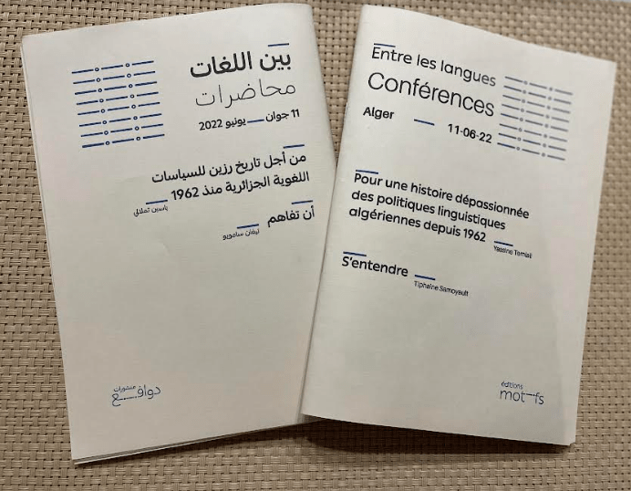 Les éditions Motifs publient Entre les langues Présentation de l’éditrice (Maya Ouabadi) : Cette publication s’inscrit dans la continuité d’un projet porté par le collectif les Enfants du nouveau monde (éditions Barzakh, les éditions Motifs, Meltinart), qui a organisé une série de conférences le 11 juin 2022 aux Ateliers Sauvages à Alger.