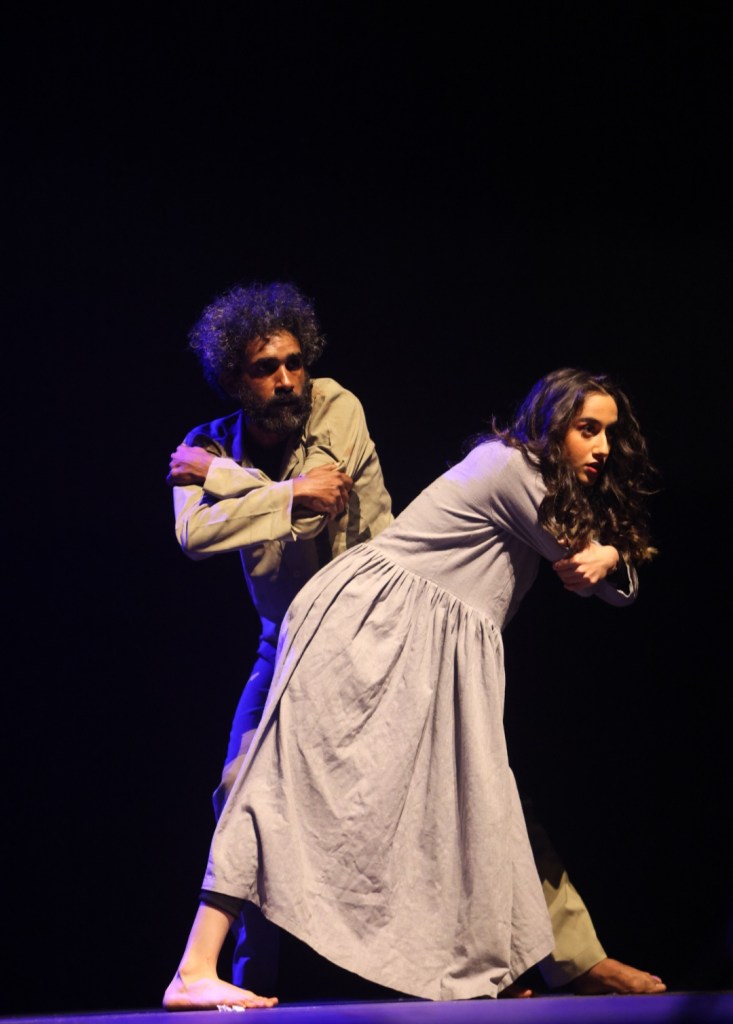 Pour accentuer cette exploration de l’être humain, Essa Alsindeed a misé sur un jeu d’acteur particulièrement intense, ancré dans les grandes méthodes théâtrales. Il y a indéniablement des influences de Stanislavski, mais aussi des touches apparentes de la biomécanique de Meyerhold et, dans une certaine mesure, la méthode de Grotowski. Cette approche audacieuse et hybride a porté ses fruits, donnant naissance à une performance d’une puissance remarquable. La prestation des comédiens, menée par Omar Alsaeedi dans le rôle de Tomás, a été exceptionnelle. Mais tous les autres acteurs, tels que Zakaria Alcheikh, Ali Alfardan, Alea Ibraheem, Abderrahmane Ismaïl, Ali Abu Dib, Kamel Alboussaidi, Youssef Abdallah, ont magistralement incarné leurs personnages, à la hauteur du pari ambitieux du metteur en scène, qui consistait, semble-t-il, à esthétiser la laideur et l’horreur.