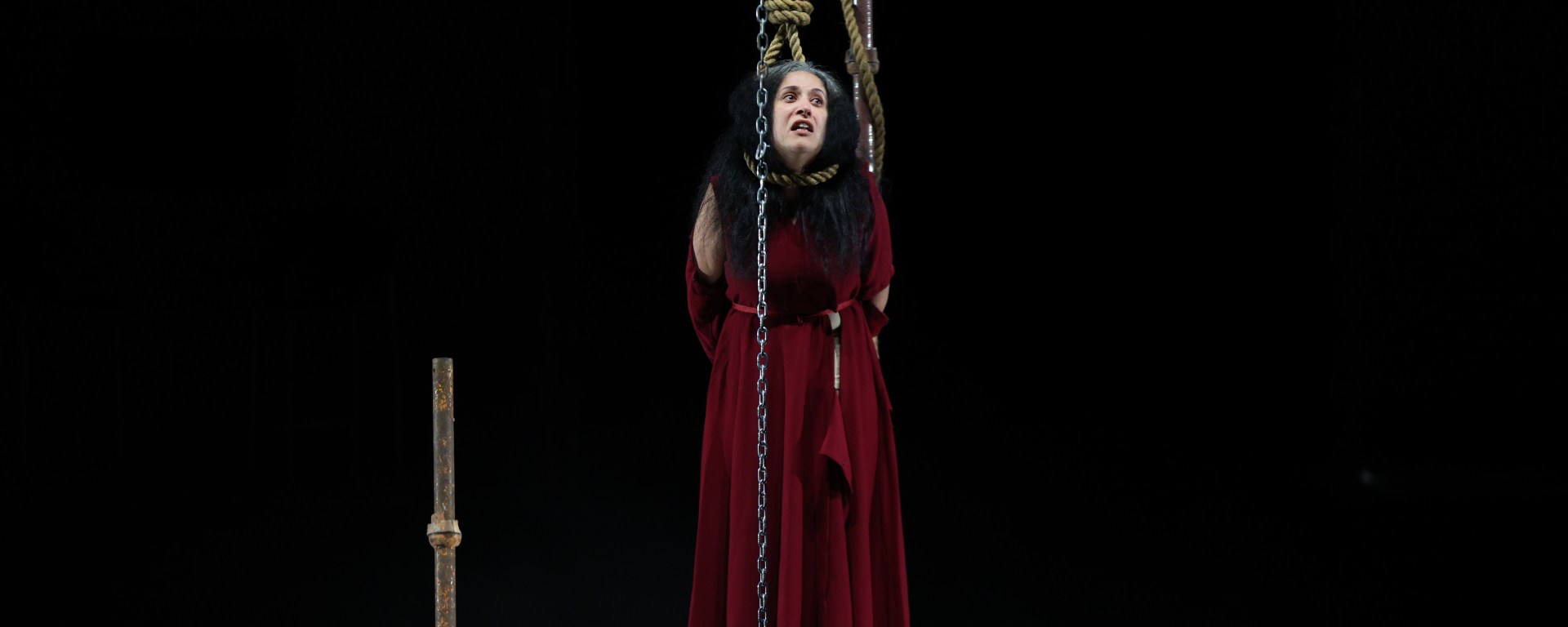 L’analogie entre le destin de cette femme et la Palestine est inévitable et frappante. Cette femme incarne la terre palestinienne, dépossédée et martyrisée, ainsi que la lutte quotidienne de son peuple pour sa dignité. D’autant plus que le texte s’ouvre sur des vers du poète palestinien Mahmoud Darwich, et son célèbre poème « Madhih ad-dhil al-âali » (Éloge de l’ombre haute). Cette femme incarne également tous les peuples en lutte, tous les combats justes qui engagent notre responsabilité. Dans la pièce, Ismaïl Abdallah insère ses propres poésies et convoque d’autres figures poétiques emblématiques de la résistance, telles que Mahmoud Darwich, Moudhaffar Al-Nawab, Samih Al Qassim, Di’bil al-Khuza’i, et Taoufik Ziyad, qui incarnent chacun à sa manière cette lutte pour la liberté et la justice.