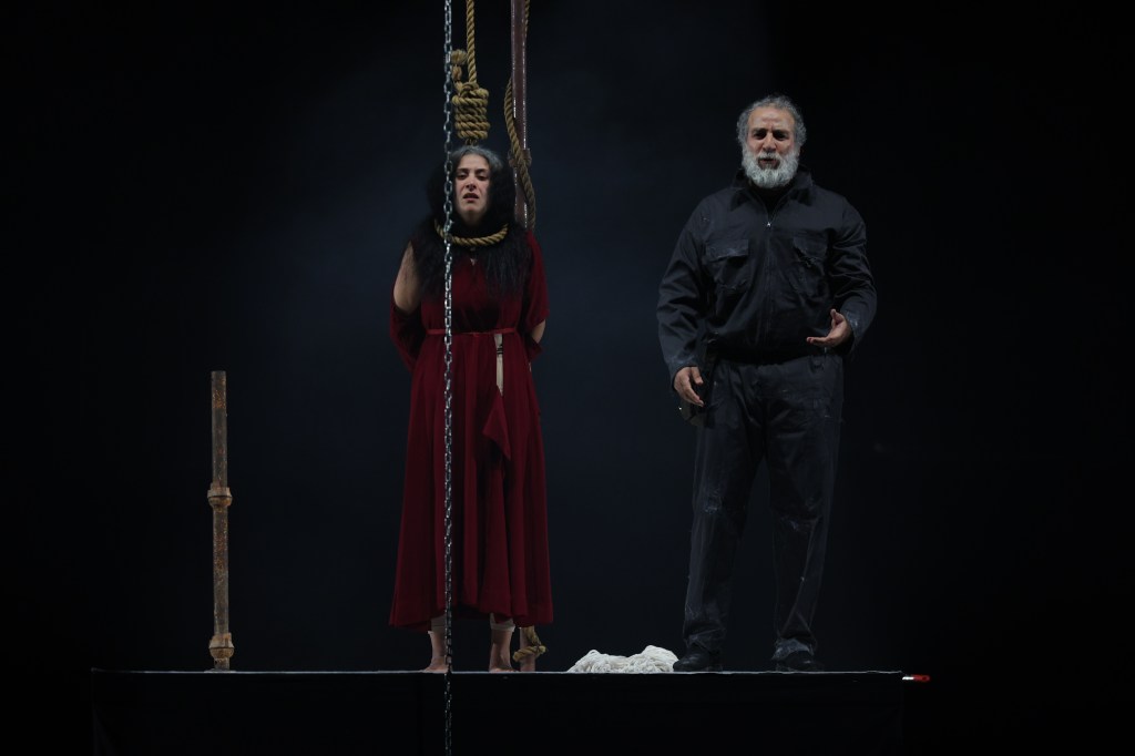 Les choix du metteur en scène Mohamed El Amiri sont d’une grande pertinence, et la pièce ne souffre d’aucun moment de pause ou de monotonie. Chaque scène est une invitation à approfondir la réflexion, à aller toujours plus loin dans l’exploration de la thématique centrale. Le dispositif scénique, en particulier, est remarquable. Le décor, à la fois fonctionnel et symbolique, comprend une guillotine, objet de l’exécution imminente qui sert également de métaphore de la machine sociale qui broie les individus. Elle se transforme habilement en différents appartements d’un immeuble, jouant sur la hauteur et sur un matériau métallique qui renforce l’aspect sombre et oppressant de l’atmosphère, et reflète la brutalité et la froideur d’un monde régi par des forces incontrôlables. Mais paradoxalement, ce décor qui respire l’austérité, la déshumanisation et la violence est aussi empreint d’une beauté crue et intense, un contraste marquant qui soulève des questions profondes sur la condition humaine. La juxtaposition du laid et du beau, du magnifique et du repoussant, du douloureux et du sublime, accentue l’urgence et l’inconfort de la situation, ainsi que l’intensité du message délivré par la pièce.