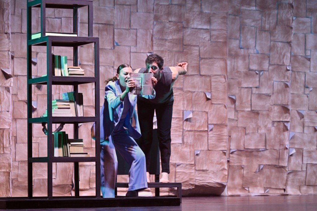 Mis en scène par Shaden Abu Elasal, « Rich » explore les relations complexes de pouvoir et d’interactions humaines. Quatre personnages se retrouvent dans un lieu clos, leurs vies entrelacées dans un espace où le rapport de force se joue à chaque mouvement. La danse devient le vecteur de cette exploration, et chaque geste dénonce l’influence du pouvoir sur la formation de l’identité, ses choix et sa quête de liberté. Dès l’ouverture du spectacle, deux danseurs s’abandonnent à leurs mouvements dans un espace baigné de lumière, incarnant une harmonie parfaite. Mais cette tranquillité est rapidement perturbée par l’arrivée d’un personnage qui brise leur complicité et impose sa domination sur eux. L’élément central de cette domination est un siège placé en hauteur, et un ensemble de livres, aux formats divers, qui devient le moyen par lequel ce personnage assois son pouvoir